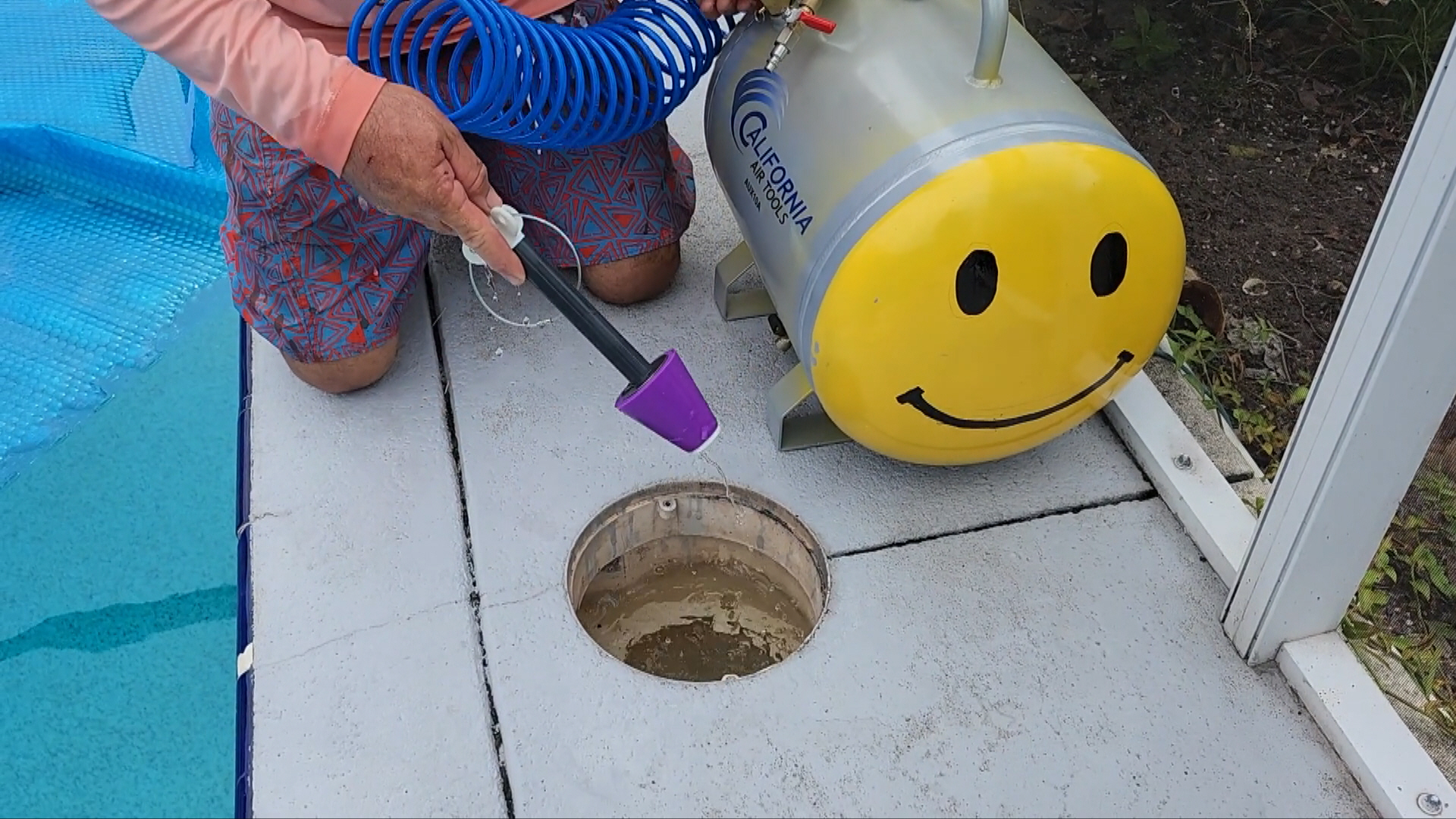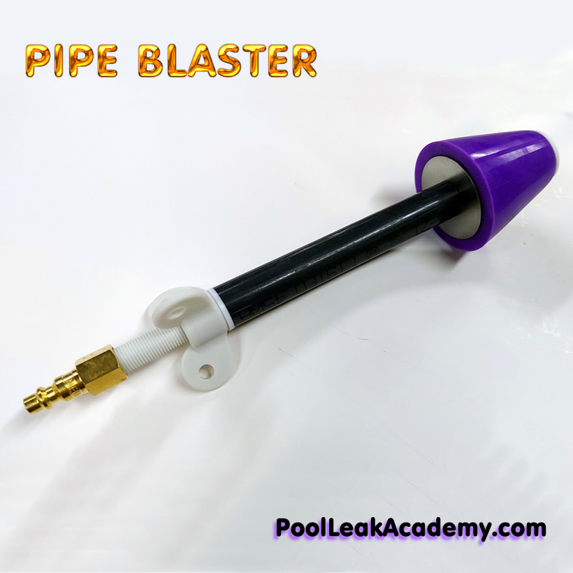 Hi I'm Nate, and as the owner of The Pool Leak Academy I get to produce what ever product I want, and the blaster was high on my list. Every city has different builders and where I live now every pool I visit has an overflow pipe in the bottom of the skimmer. Its always a mystery of where this pipe goes and, of course, is it the source of the leak i'm looking for? Blasting air through the pipe instantly locates the far end, but what makes it a pain is the pipes in the bottom of these skimmers are all sorts of sizes from male adapters to 2" sockets- so fitting the right plug is frustrating.