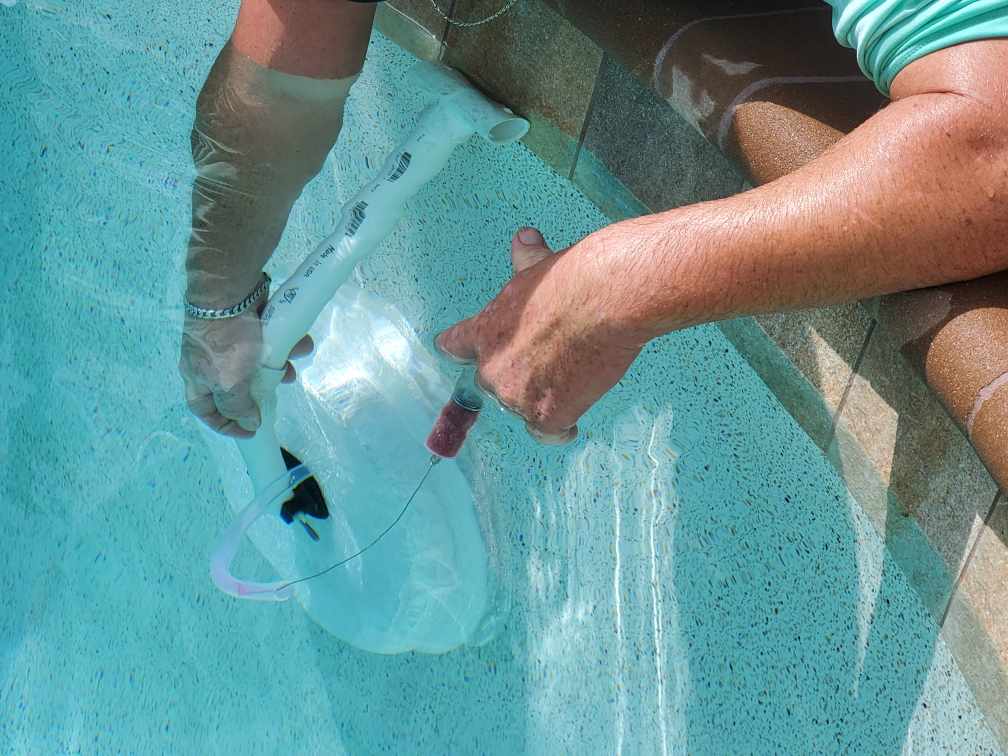 Introducing the leak tester for swimming pool lights: This one-piece silicone dome covers the light and forms a water tight seal against the wall suitable for dye testing through a clear tube. If a light housing is leaking behind the dome, the suction from the water loss will cause dye to be drawn into the clear tube.